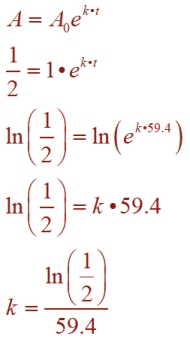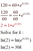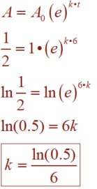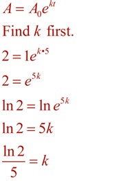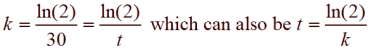 This association among k, t, and ln(2) can be seen at work in solving for k