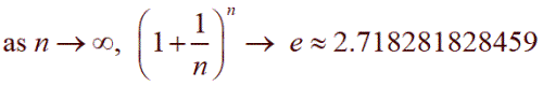 The number e is one of the famous numbers in mathematics. As your mathematical studies progress from Algebra 2 through Calculus, you will discover that the role of e in mathematics is equal in importance to