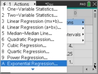 We will solve this again, using the exponential regression capabilities of the graphing calculator. |